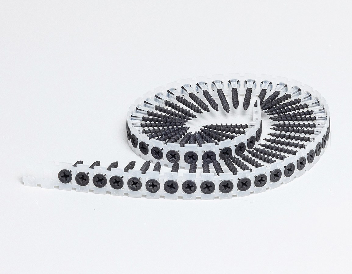 Саморезы в ленте, фосфатированные, резьба "дерево", 3,5х35мм, используются в ленточных шуруповертах для крепления различных материалов к основаниям из древесины. Количество в упаковке: 1000шт Вес упаковки: 1,8кг