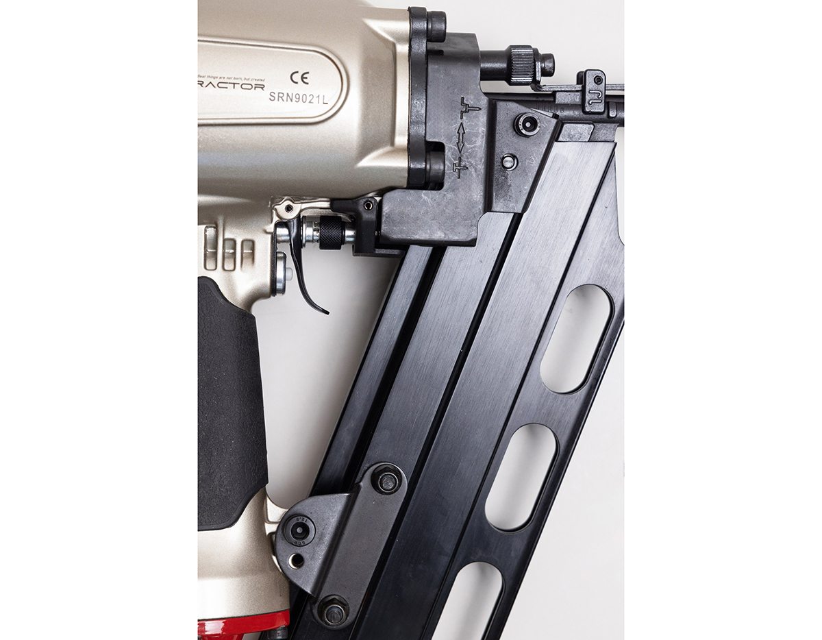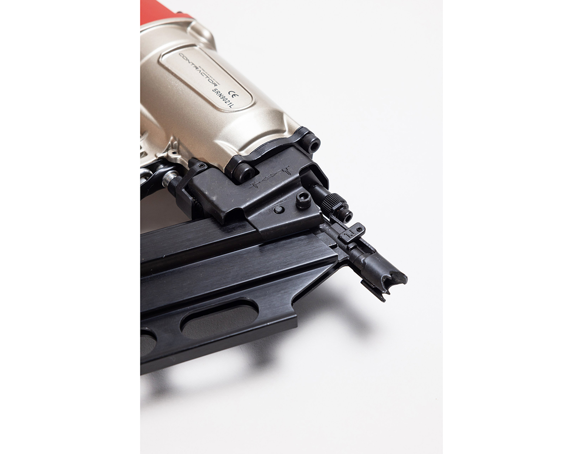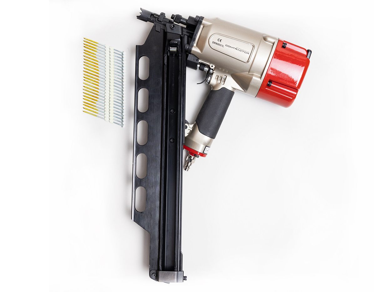 Компрессорный нейлер, работающий в диапазоне давления воздуха от 6 до 8атм. Используемые гвозди - каркасные реечные 21°, длиной от 50 до 83мм, с диаметром стержня от 2,8 до 3,4мм и шляпки - 7мм. Оснащен зубчатым носом, регулятором глубины забивания, переключателем режимов работы (контактного и последовательного). Гарантия: 1 год с момента продажи. Бренд: CONTRACTOR™ Страна производства: Китай Вес нейлера: 4,1кг