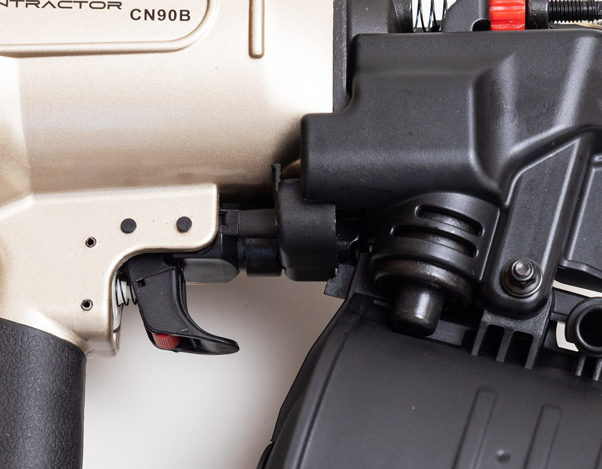 Компрессорный каркасный нейлер, работающий в диапазоне давления воздуха от 6 до 8атм. Используемые гвозди - каркасные, длиной от 50 до 90мм, с диаметром стержня от 2,87 до 3,33мм и шляпки от 6 до 8мм. Оснащен зубчатым носом, регулятором глубины забивания, переключателем режимов работы. Гарантия: 1 год с момента продажи. Бренд: CONTRACTOR™ Страна производства: Китай Вес нейлера: 4,5кг